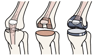 変形性膝関節症や関節リウマチにより強い痛みや機能障害がある場合に有効な治療法です。手術では、傷んだ膝関節の表面を、金属やセラミック、ポリエチレン製の人工関節に置き換えることで、膝の痛みを大幅に軽減し、歩行や日常生活動作が改善されます。